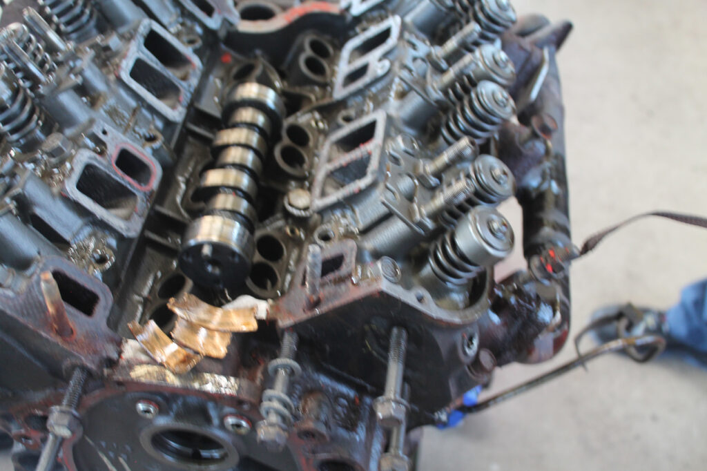 Nach dem Ausbau des Motors stellten wir fest, das Nockenwellenlager hate sich gelöst und führte zum Bruch der Nockenwelle.